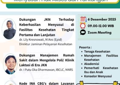 Read MoreWEBINAR “Dukungan JKN Terhadap Keberhasilan Menyusui di Fasilitas Kesehatan Tingkat Pertama dan Lanjutan”