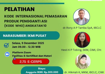 Read MorePELATIHAN ‘’KODE INTERNASIONAL PEMASARAN PRODUK PENGGANTI ASI (KODE WHO’’ ANGKATAN 10
